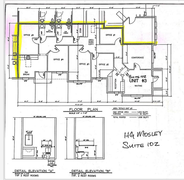 Wildwood Village - BRAND NEW - Executive Office Space. 5 office, reception area, waiting room, conference room, kitchen, copy room and two restrooms. - Suite 102 1818 Sqft, Water Paid $3090.50 / mo. 5 / yr lease or 3181.50 / mo for 3 / yr lease. (See Reference Floor Plan B)